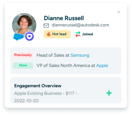 Easily track and get notified about changes impacting your top contacts and accounts to know exactly when to reach out